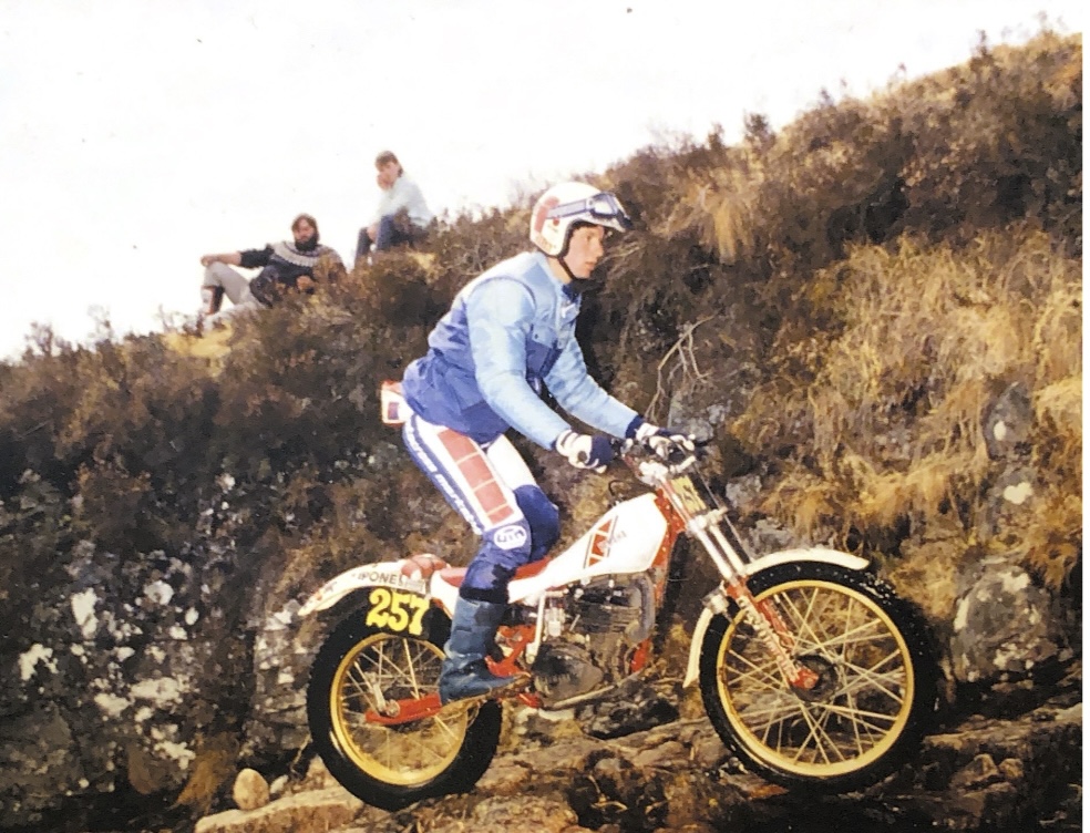 - Premiers pas dans le trial avec la Yamaha TY 125 (achetée chez Motos Miellin qui sera un sponsor de qualité et très fidèle) en parallèle d’une scolarité d’études techniques